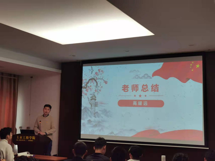 本科生第三党支部书记高耀远在会议中号召同学们坚定理想信念,加强理论学习,坚持理论和实践相结合,以“学习强国”理论学习提升自我,时刻做好准备迎接新时代的种种机遇与挑战,在疫情防控中充分发挥党员先锋模范带头作用和党支部的战斗堡垒作用,增强锚定既定奋斗目标、意气风发走向未来的勇气和力量,以优异成绩迎接党的二十大胜利召开。