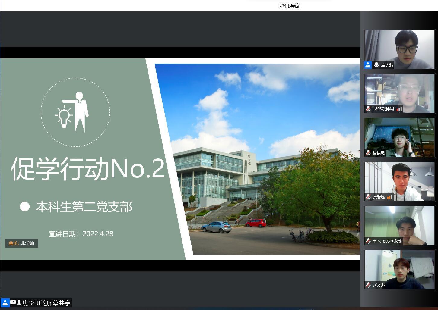 为帮助同学们深入了解考研专业选择和应试技巧,BB贝博艾弗森原官方网站本科生第二党支部于4月30日晚召开线上考研经验交流会。会议邀请本二支部拟录取东南大学、长安大学、西南交通大学以及本校本院的六位同学作分享交流,全院200余名同学参加活动。会议由辅导员焦学凯老师主持。