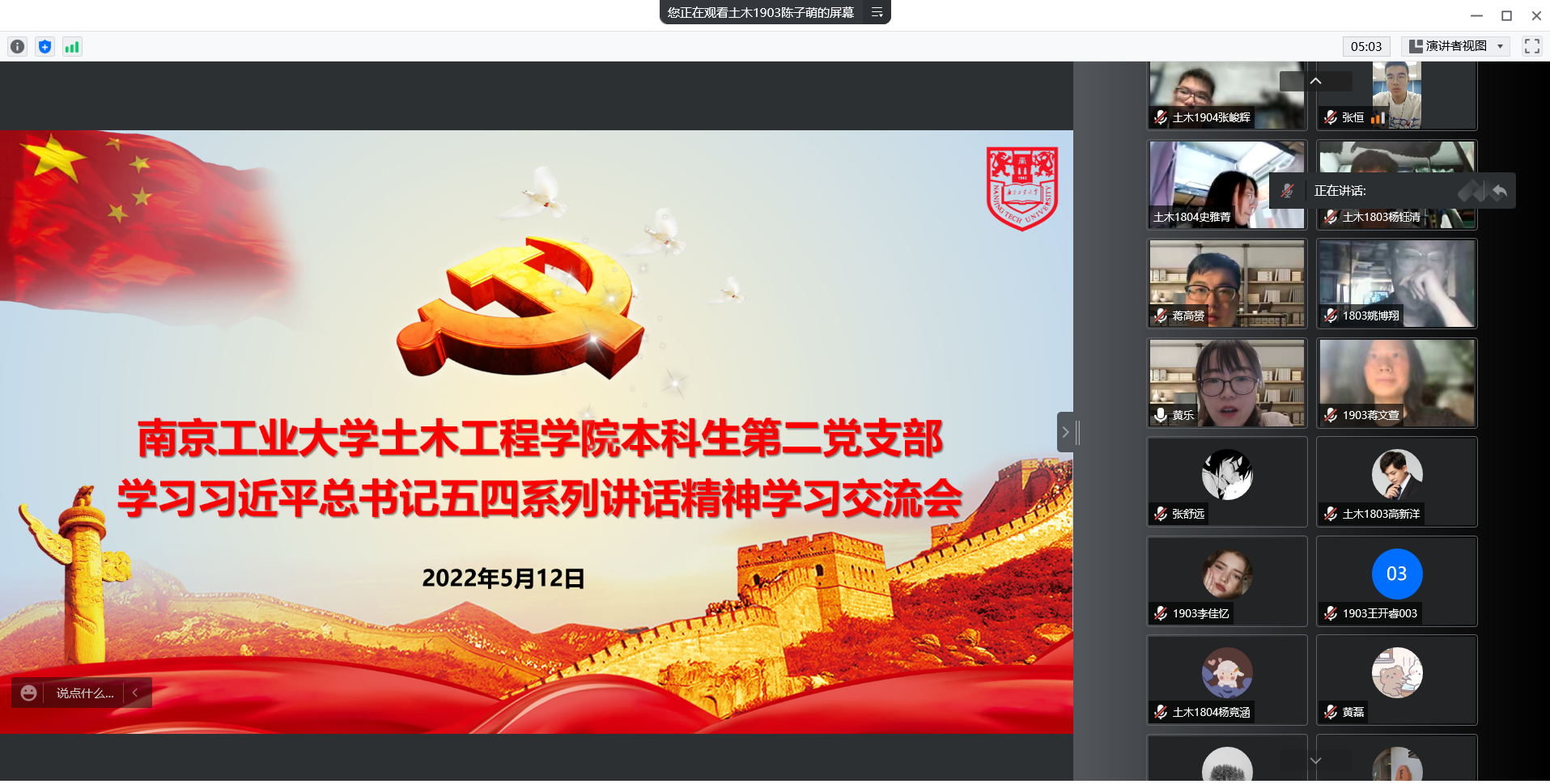 为深入学习贯彻习近平总书记五四系列讲话精神,激励青年党员鼓足干劲、踔厉奋发,BB贝博艾弗森原官方网站本科生第二党支部于5月12日晚召开线上学习交流会。支部全体党员参加会议,会议由党支部书记黄乐老师主持。